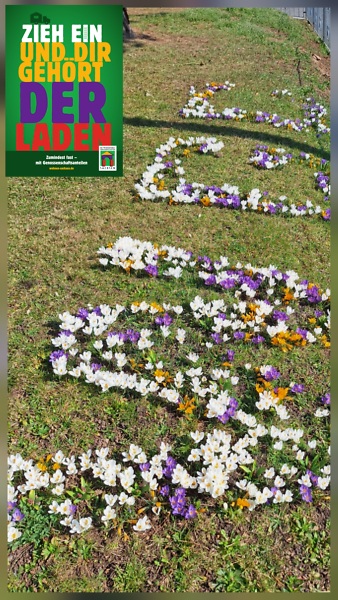Mit den ersten Frühlingstagen können Sie nun unsere Initialen in Form einer Frühlingsblumenwiese vor unserer Geschäftsstelle bewundern.